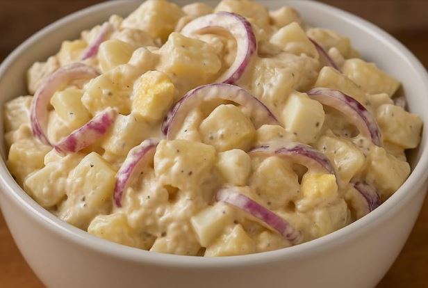 Amikor a burgonya teljesen megpuhult, leszűröm, hagyom kihűlni, majd egy nagy keverőtálba öntöm. Hozzáadom a párolt lilahagymát, az apróra vágott tojásokat, és rákanalazom a majonézes-tejfölös mártást. Az egészet óvatosan átforgatom, hogy a burgonyakockák ne törjenek szét, de a szósz mindenhol egyenletesen bevonja őket.